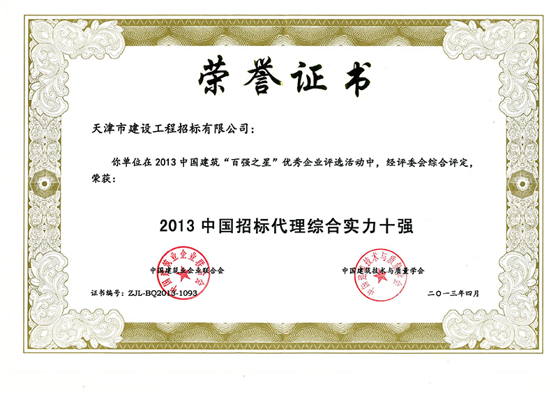 招標(biāo)代理綜合實力十強(qiáng)2013