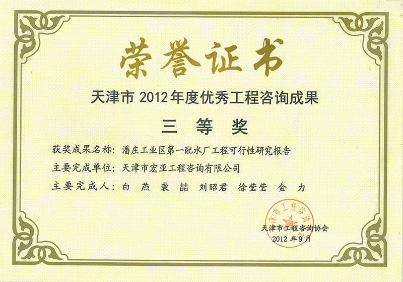 優(yōu)秀咨詢成果三等獎(2012)