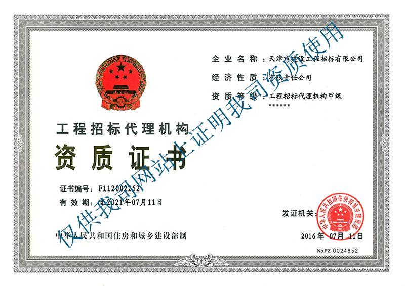 招標代理甲級資質(zhì)正本