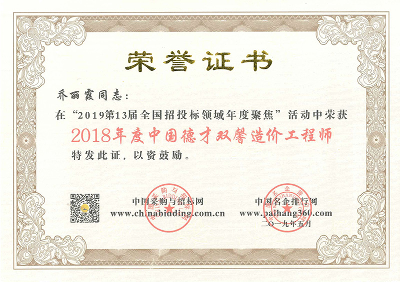 喬麗霞 造價(jià)師2018
