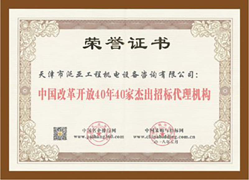 2018改革開放40年40家杰出招標(biāo)代理機(jī)構(gòu)