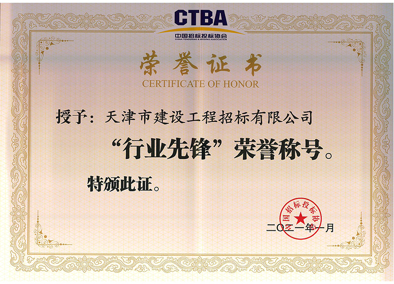 招投標(biāo)協(xié)會(huì)“行業(yè)先鋒”榮譽(yù)