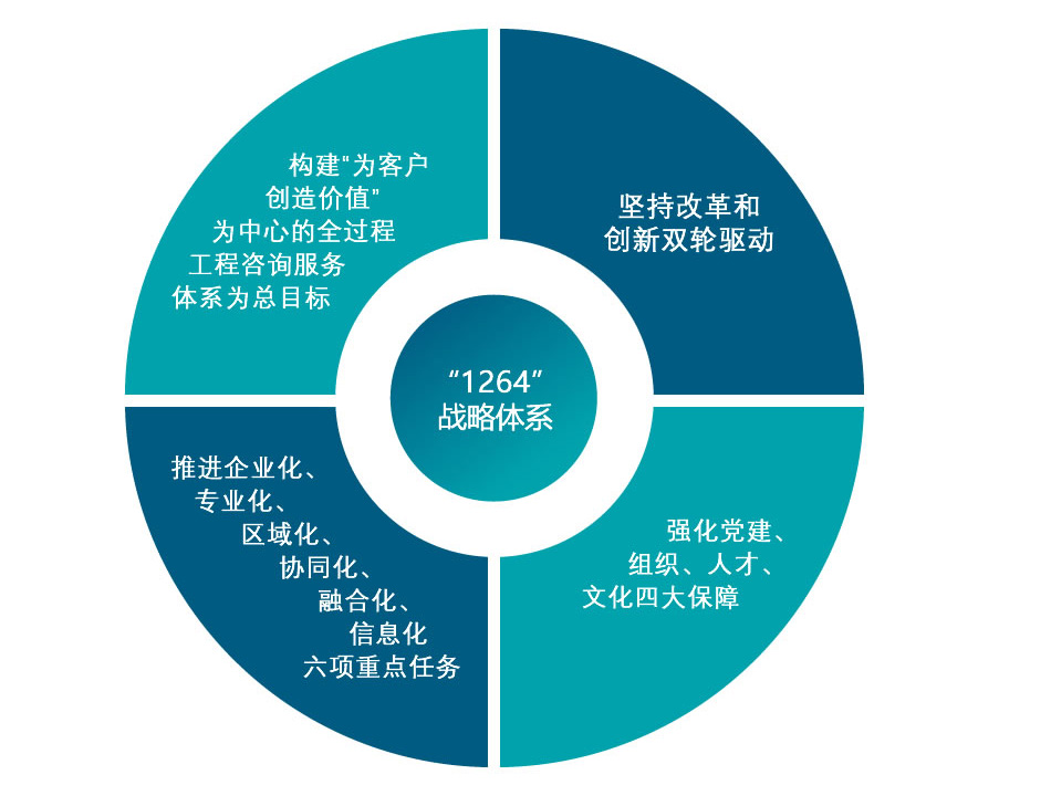 以習近平新時代中國特色社會主義思想為指導,緊緊把握新發(fā)展格局歷史機遇,堅定不移貫徹新發(fā)展理念,以推動高質(zhì)量發(fā)展為主題,以市場需求為導向,全力實施“1264”戰(zhàn)略體系,即以構(gòu)建“為客戶創(chuàng)造價值”為中心的全過程工程咨詢服務體系為總目標,堅持改革和創(chuàng)新雙輪驅(qū)動,全面推進企業(yè)化、專業(yè)化、區(qū)域化、協(xié)同化、融合化、信息化等六項重點任務,強化黨建、組織、人才、文化四大保障,將天咨公司全力打造成為京津冀區(qū)域領先的工程咨詢品牌企業(yè)和上海建科集團區(qū)域業(yè)務發(fā)展平臺。